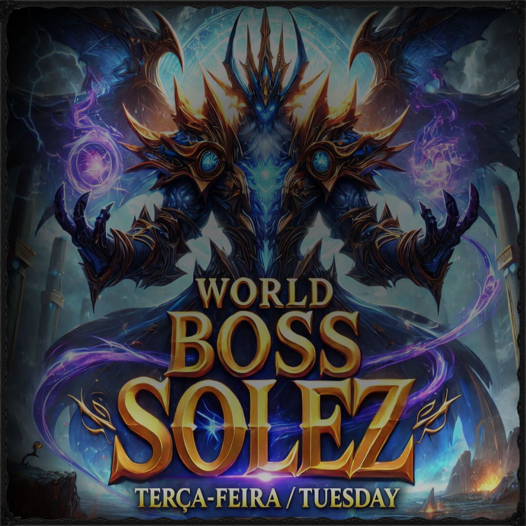Amanhã dia 3 de Fevereiro as 20:00 horas teremos a invasão do World Boss Solez ao norte de Darashia. Prepare-se pois teremos muitas recompensas especiais.